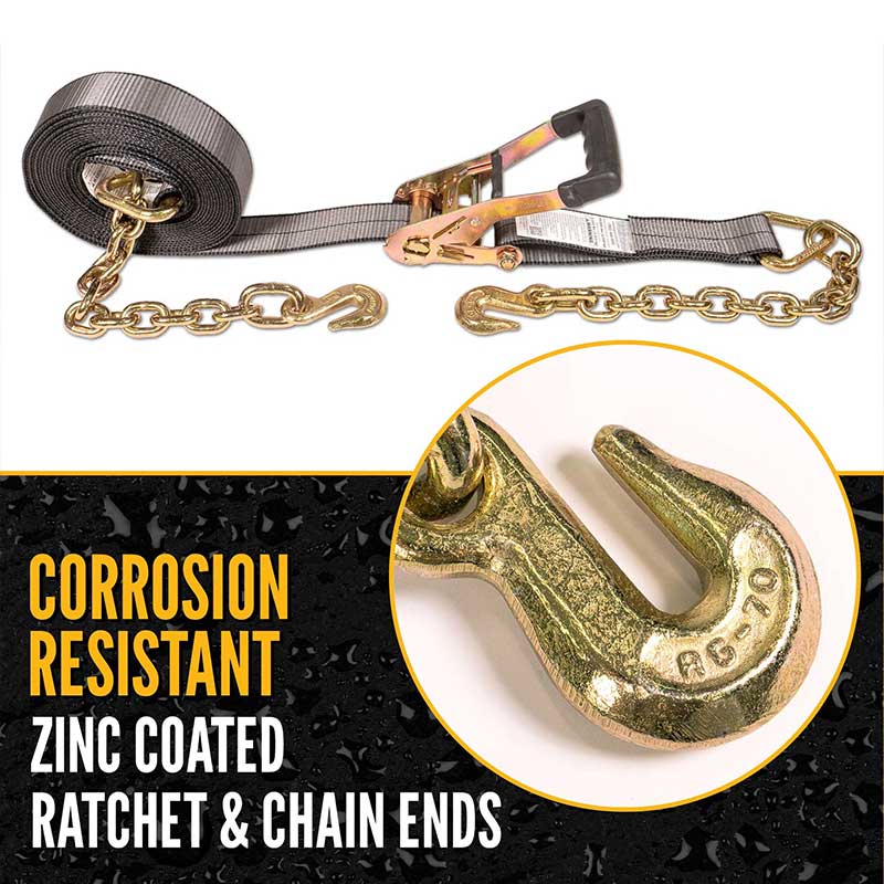 Blackline 2" X 30" Надміцний ремінь із храповим механізмом із подовжувачем ланцюжка